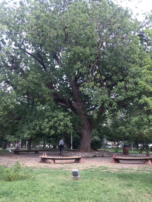 Trunk: The trunk is thick and knotted, with a grey or reddish-brown bark that becomes deeply fissured with age.